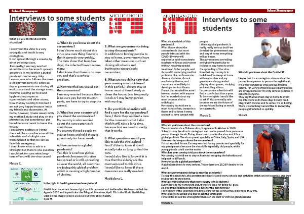 Now that my country is blocked I am not very happy because I miss my friends and classmates. At home, however, I make sweets with my mother, I study and play on the playstation, but sometimes I get bored because I want to leave the house.