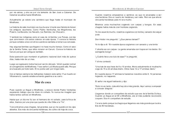 Y encontramos unas chagras, tan grandes, que yo me quedé con los ojos abiertos. Era más de cincuenta hectáreas, de cultivo de hoja de coca.