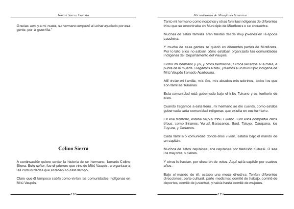 A continuación quiero contar la historia de un hermano, llamado Celino Sierra. Este señor, fue el primero que vino de Mitú Vaupés, a organizar a las comunidades que estaban en este tiempo.