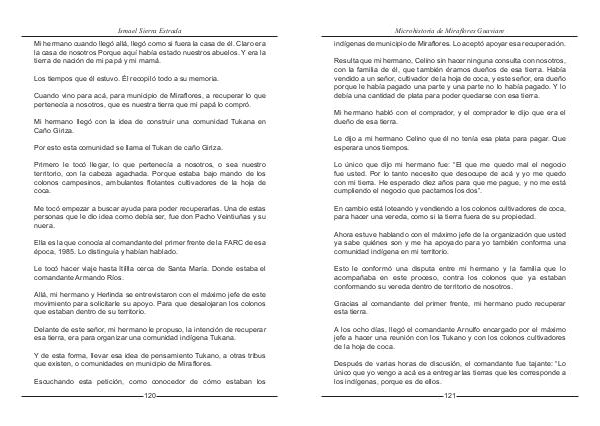 Microhistoria de Miraflores Guaviare indígenas de municipio de Miraflores. Lo aceptó apoyar esa recuperación.