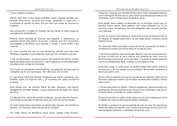 Y era buena persona, buen personaje. Mirando que era buena persona, yo hice un trato con él, para cultivar una hectárea de hoja coca. Así duramos algunos tiempos, como dos años. Y cuando de pronto apareció con él los trabajadores de él, a raspar, y a procesar la hoja.