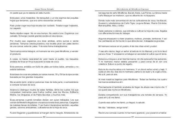 Cuando ese señor me llamó, yo llegué, lo saludé. Me dijo:“ siéntese, venga tome”. Recibí una cerveza cuando mi hermano apareció, y se pusieron a hablar. 81
