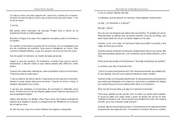 Y así se pararon se fueron yendo. Cuando de pronto escuchó unos tiros, desde la mesa donde estuvimos tomando. Cuando él volvió a mirar, le estaban disparando era a ellos.
