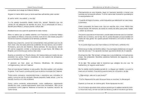 Como venía contando anteriormente, como estábamos negociando semilla de coca, cuando aparecieron esos tres muchachos. Que ya se convirtieron como pájaros. Matones al servicio de nuestros vecinos de Caño Giriza.