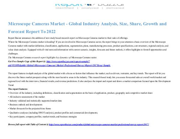 Browse full report with Table of Content @ http://www.reportbazzar.com/product/global-microscope-cameras-market-professional-survey-report-2017/
