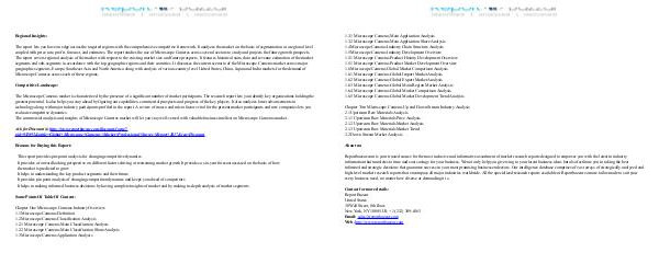 coupled with price rate, profit, forecast, and estimates. The report studies the use of Microscope Cameras across several sectors to study and projects the future growth prospects.