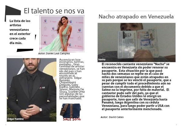 El reconocido cantante venezolano "Nacho" se encuentra en Venezuela sin poder renovar su pasaporte. Esta situación por la que pasó nacho dos semanas se repite en el caso de miles de venezolanos que están atrapados en su país porque se les venció el pasaporte, que a pesar de cumplir todo el procedimiento aún no cuentan con el documento debido a que el Saime no lo imprime, por falta de material. El cantautor pudo salir del país, ya que el gobierno de Estados Unidos le otorgó un pasaporte, tuvo que salir de Venezuela hasta Panamá, luego Argentina con su cédula Venezolana, para luego poder partir a USA con el pasaporte anteriormente mencionado.