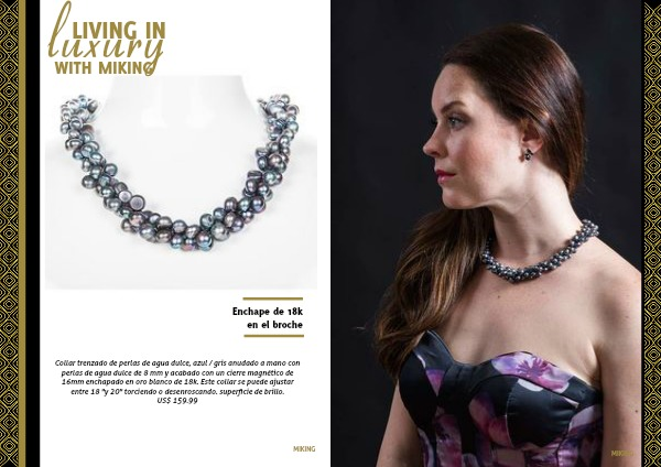 Collar trenzado de perlas de agua dulce, azul / gris anudado a mano con perlas de agua dulce de 8 mm y acabado con un cierre magnético de 16mm enchapado en oro blanco de 18k. Este collar se puede ajustar entre 18 "y 20" torciendo o desenroscando. superficie de brillo.