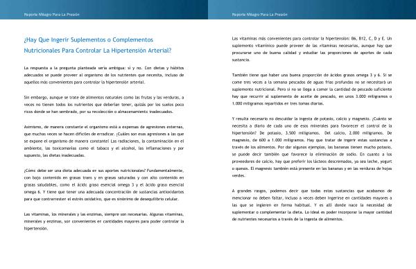 ¿ Hay Que Ingerir Suplementos o Complementos Nutricionales Para Controlar La Hipertensión Arterial ?