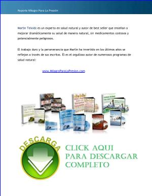 El trabajo duro y la perseverancia que Martín ha invertido en los últimos años se reflejan a través de sus escritos . Él es el orgulloso autor de numerosos programas de salud natural : www . MilagroParaLaPresion . com www . MilagroParaLaPresion . com | 39