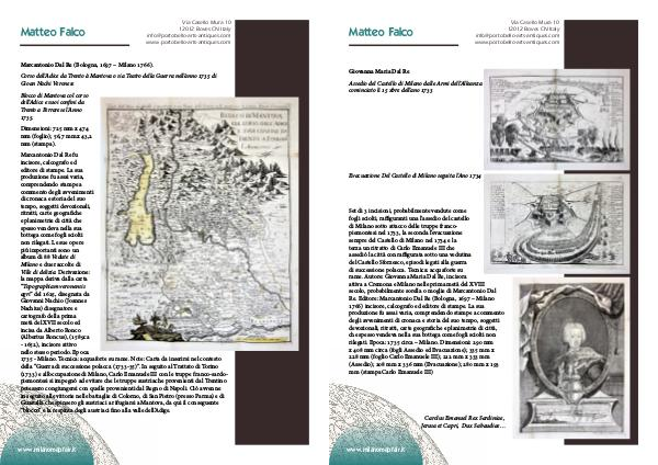 1735 - Milano. Tecnica: acquaforte su rame. Note: Carta da inserirsi nel contesto