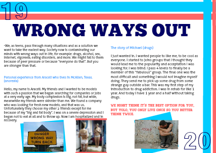 I just wanted in. I wanted people to like me, to be cool as everyone. I started to joins groups that I thought they would lead me to the popularity and acceptation I was looking for. I was blind. I pass 4 levels to finally be a member of this “fabulous” group. The final one was the most difficult and something I would not imagine myself doing. They send me to pick up some drug from some strange guy outside a bar. This was my first step of my introduction to drug addiction. I was in rehab for like 1 year. And today I have 1 year and a half without taking drugs.