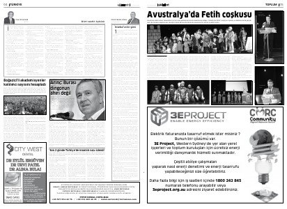 suçlaması ile karşı karşıya kaldı?” dedi. NSW Parlamentosu’ nun almış olduğu sözde soykırım kararını da e- leştiren Abdulkadir Sula Avustralyalı politikacılara seslendi ve“ o kadar gülünç bir şey yapıyorsunuz ki tarihi politikacılar eliyle yazacak kadar dünyaya karşı kendinizi gülünç duruma düşürüyorsunuz” dedi. Abdulkadir Sula’ nın bu sözleri salondan büyük alkış aldı. Bizim fetihlerimizde barış vardır, a- dalet, esaretten kurtardığımız mazlumlar vardır diyen Sula,“ işgal ise zulümdür, kandır ve gözyaşıdır, bizim tarihimizde işgal yoktur” diye |