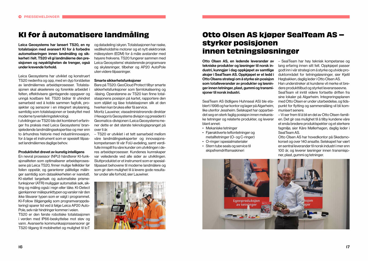 – SealTeam har høy teknisk kompetanse og lang erfaring innen sitt felt. Oppkjøpet passer godt inn i vår strategi om å styrke og utvide produktområdet for tetningsløsninger, sier Kjetil Høgbakken, daglig leder i Otto Olsen AS. Han understreker at kundene vil merke et bredere produkttilbud og styrket leveranseevne. SealTeam vil inntil videre fortsette driften fra sine lokaler på Algarheim. Integreringsplanen med Otto Olsen er under utarbeidelse, og tidspunkt for flytting og sammenslåing vil bli kommunisert senere. – Vi ser frem til å bli en del av Otto Olsen-familien. Det gir oss mulighet til å tilby kundene våre et enda bredere produktspekter og et sterkere fagmiljø, sier Kåre Møllerhagen, daglig leder i SealTeam AS. Otto Olsen AS har hovedkontor på Skedsmokorset og over 140 ansatte. Selskapet har vært en sentral leverandør til norsk industri i mer enn 100 år, og leverer løsninger innen transmisjoner, plast, gummi og tetninger.