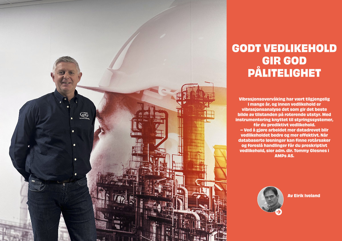 Vibrasjonsovervåking har vært tilgjengelig i mange år, og innen vedlikehold er vibrasjonsanalyse det som gir det beste bilde av tilstanden på roterende utstyr. Med instrumentering knyttet til styringssystemer, får du prediktivt vedlikehold. – Ved å gjøre arbeidet mer datadrevet blir vedlikeholdet bedre og mer effektivt. Når databaserte løsninger kan finne rotårsaker og foreslå handlinger får du preskriptivt vedlikehold, sier adm. dir. Tommy Glesnes i AMPs AS.