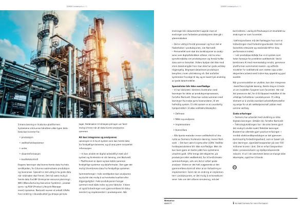 Gode erfaringer – Siemens har arbeidet med utvikling av slike digitale løsninger i åtteårs tid , forteller Rørtvedt . – Teknologiutviklingen har i de siste årene gjort det mulig å utvikle svært fleksible løsninger . Brukere har allerede gjort positive erfaringer . I nordisk elektronikkproduksjon er det gjennom kontinuerlig forbedringsarbeid , som er basert på våre løsninger , oppnådd besparelser på over 100 millioner kroner i året . Det er erfart besparelser både i prosessindustri og stykkproduserende industri . Vi vil i de nærmeste årene se mange slike eksempler , også her til lands .
