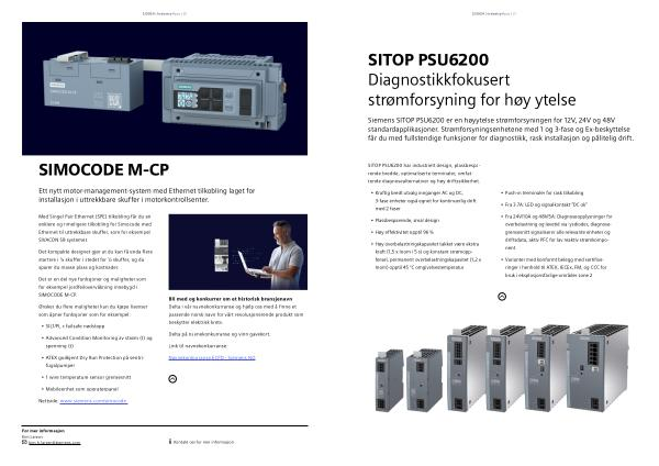 Siemens SITOP PSU6200 er en høyytelse strømforsyningen for 12V , 24V og 48V standardapplikasjoner . Strømforsyningsenhetene med 1 og 3-fase og Ex-beskyttelse får du med fullstendige funksjoner for diagnostikk , rask installasjon og pålitelig drift .