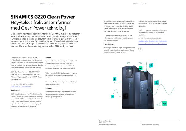 Se mer informasjon på hjemmesiden SINAMICS G220 - Siemens Global