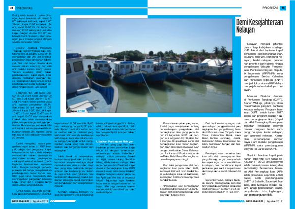 Menurut Direktur Jenderal Perikanan Tangkap( DJPT), Sjarief Widjaja, pihaknya akan maksimalkan program bantuan kepada nelayan. Program bantuan DJPT untuk tahun 2017 terdiri dari program bantuan sarana penangkapan ikan( Kapal dan Alat Penangkap Ikan), peningkatan kehidupan nelayan melalui program bedah kampung nelayan, kedai nelayan, dan asuransi nelayan. Kemudian, keberlanjutan sumber daya alam melalui pengelolaan WPPNRI serta pembangunan wilayah terluar lewat SKPT..