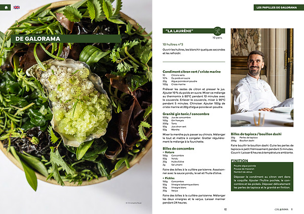Déposer le condiment au citron vert dans la coquille. Ajouter l’ huître pochée, le concombre et les pickels. Déposer délicatement les perles de tapioca et le granité en finition.