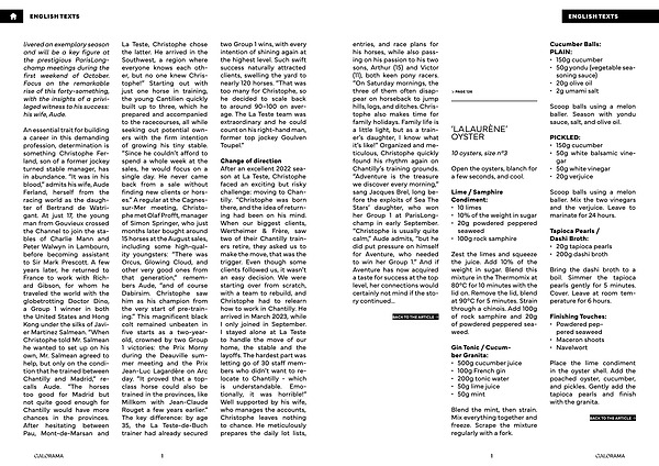 Change of direction After an excellent 2022 season at La Teste, Christophe faced an exciting but risky challenge: moving to Chantilly.“ Christophe was born there, and the idea of returning had been on his mind. When our biggest clients, Wertheimer & Frère, saw two of their Chantilly trainers retire, they asked us to make the move, that was the trigger. Even though some clients followed us, it wasn’ t an easy decision. We were starting over from scratch, with a team to rebuild, and Christophe had to relearn how to work in Chantilly. He arrived in March 2023, while I only joined in September. I stayed alone at La Teste to handle the move of our home, the stable and the layoffs. The hardest part was letting go of 30 staff members who didn’ t want to relocate to Chantilly- which is understandable. Emotionally, it was horrible!” Well supported by his wife, who manages the accounts, Christophe leaves nothing to chance. He meticulously prepares the daily lot lists,