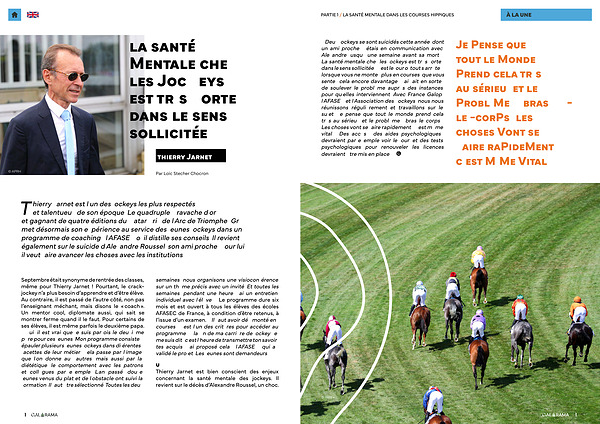 T hierry Jarnet est l’ un des jockeys les plus respectés et talentueux de son époque. Le quadruple Cravache d’ or et gagnant de quatre éditions du Qatar Prix de l’ Arc de Triomphe( Gr. 1) met désormais son expérience au service des jeunes jockeys dans un programme de coaching à l’ AFASEC où il distille ses conseils. Il revient également sur le suicide d’ Alexandre Roussel, son ami proche. Pour lui, il veut faire avancer les choses avec les institutions.