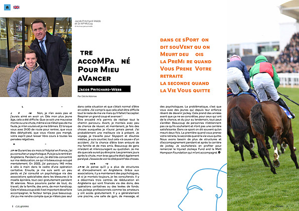 J. P.-W. Je pense qu’ il y a plus de structures et d’ encadrement en Angleterre. Grâce aux associations, il y a maintenant des psychologues, et si je montais toujours, je les consulterais. Il y a désormais trois centres de rééducation en Angleterre qui sont financés via des dons, des opérations caritatives ou des levées de fonds. Les jockeys professionnels comme les amateurs y ont accès gratuitement. Il y a généralement une piscine, une salle de gym, de massage, et