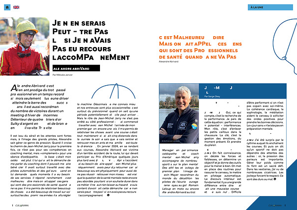 Il est issu du sérail et les attentes sont fortes mais, à l’ image des grands pilotes, Alexandre sait gérer ce genre de pression. Quand il croise le chemin de Jean-Michel Jarry pour la première fois, ce n’ est pas pour ses compétences en coaching mental, mais « simplement » pour une séance d’ ostéopathie. « À la base, c’ était mon ostéo. C’ est plutôt lui qui a fait la démarche de me parler du coaching dont il pouvait me faire bénéficier. Il avait surtout travaillé avec des pilotes automobiles et des golfeurs. Quand on lui demande à quels moments il a eu besoin de ses services, il répond franchement: c’ est malheureux à dire, mais on fait appel à ces gens, qui sont des professionnels de santé, quand ça ne va pas. Il m’ a permis de relativiser beaucoup de choses, ça a été beaucoup de travail sur soi, surtout les deux premières années, il a fallu régler la machine. Désormais, je me connais mieux, et nos entrevues sont plus occasionnelles, c’ est surtout du prévisionnel, quand on sait qu’ une période potentiellement difficile peut arriver ». Mais le rôle de Jean-Michel Jarry ne s’ est pas arrêté au côté professionnel: « J’ ai commencé à travailler avec Jean-Michel à l’ arrivée de mon premier garçon, encore une fois, il m’ a permis de relativiser les choses, avant, une course c’ était tout, maintenant, si j’ ai fait cinq distancés dans la journée, le soir je sais que je vais rentrer et retrouver mes enfants et ma famille. C’ est toute la différence ». En janvier 2024, en se rendant aux courses, Alexandre Abrivard est victime d’ un terrible accident de la route, lui qui devait participer au Prix d’ Amérique quelques jours plus tard avec Just Love You. « Après l’ accident, j’ ai eu besoin de faire appel à Jean-Michel plus fréquemment, j’ avais peur d’ y retourner, car j’ ai beaucoup souffert physiquement, peur aussi de ne pas réussir à retrouver mon niveau. C’ est vrai que la question de la santé mentale reste encore peu abordée, pourtant, si on souhaite durer dans ce métier, il ne faut rien laisser au hasard. Je suis content d’ avoir fait cette démarche, car je n’ en serais peut-être pas là si je n’ avais pas eu recours à l’ accompagnement. »