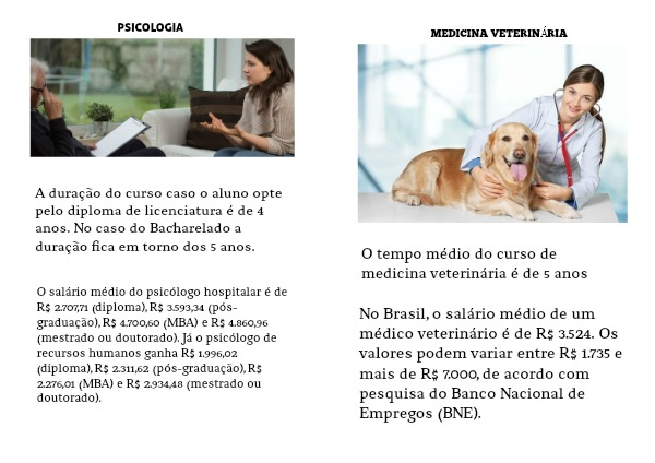 O salário médio do psicólogo hospitalar é de R$ 2.707,71 (diploma), R$ 3.593,34 (pós-graduação), R$ 4.700,60 (MBA) e R$ 4.860,96 (mestrado ou doutorado). Já o psicólogo de recursos humanos ganha R$ 1.996,02 (diploma), R$ 2.311,62 (pós-graduação), R$ 2.276,01 (MBA) e R$ 2.934,48 (mestrado ou doutorado).