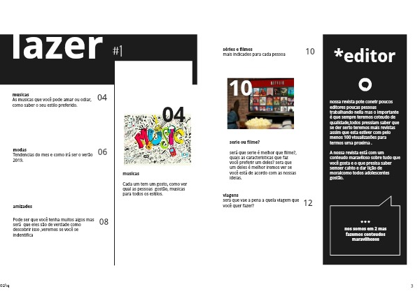 A nossa revista está com um conteudo maraviloso sobre tudo que você gosta e o que presisa saber semser cahto e dar lição de moralcomo todos adolescentes gostão.