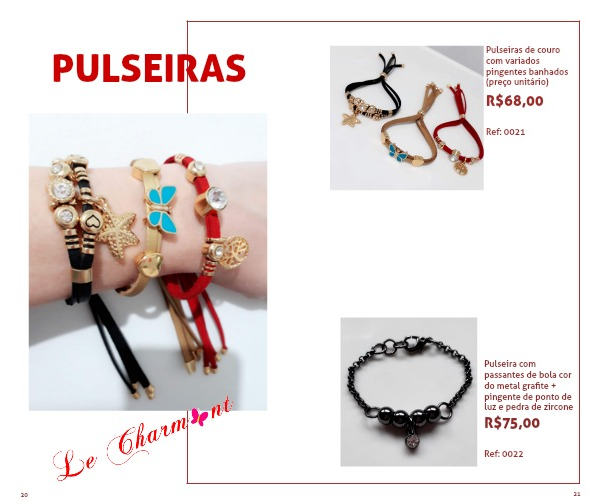 Pulseiras de couro com variados pingentes banhados (preço unitário)