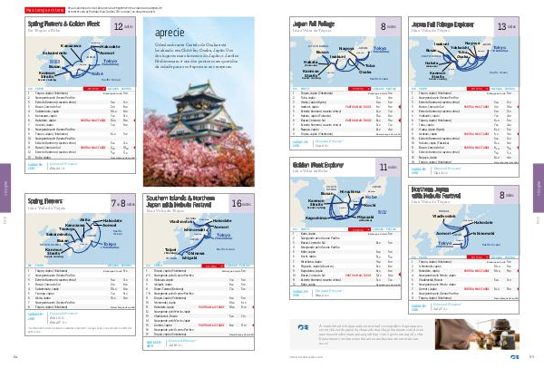 *No roteiro de 8 noites, Kanazawa e Hakodate substituem Tsuruga e Akita e inclui Aomori. A ordem dos