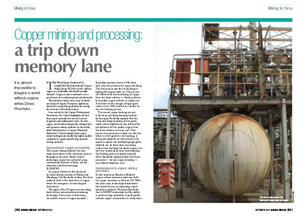 The processing plant at the Kansanshi copper mine in Zambia. SEPTEMBER 2018 MINING MIRROR Mining in focus [39]