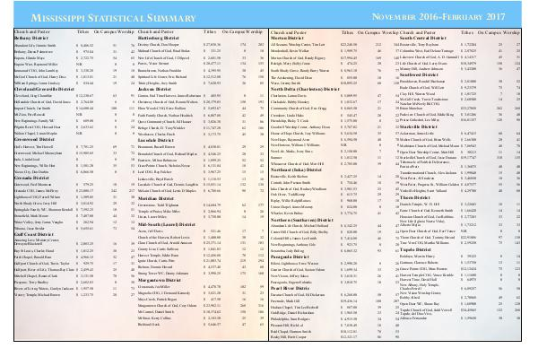 Abundant Life, Jimmie Smith $ 8,486.52 51 76 Bethany, Duran Palmertree $ 975.84 31 42 Eupora, Glenda Mays $ 2,722.75 54 65 Eupora West, Raymond Miller N / R 0 0 Immanuel COG, John Lumbley $ 3,338.28 19 18 McCool Church of God, Henry Doss $ 1,813.81 21 40