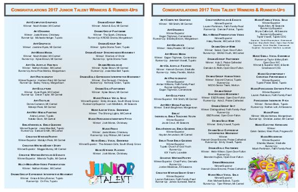 C ONGRATULATIONS 2017 T EEN T ALENT W INNERS & R UNNER - U PS