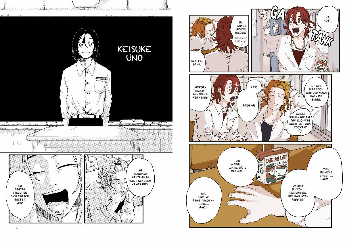 HE, HE, KOBA! KOBA! DU DU PENNST PENNST SCHON SCHON WIEDER? WIEDER? Ich schmeiß Ich schmeiß mich weg! mich weg! KLAPPE, KLAPPE, SAKU. SAKU. ICH ESS ICH ESS HIER NOCH HIER NOCH WAS UND MACH WAS UND MACH DANN DIE DANN DIE BIEGE. BIEGE. COOL! COOL! GEHEN WIR AUF GEHEN WIR AUF DEM RÜCKWEG DEM RÜCKWEG NOCH’ NE RUNDE NOCH’ NE RUNDE ZOCKEN? ZOCKEN? OH! OH! ÜBRIGENS! ÜBRIGENS! MORGEN MORGEN KOMMT KOMMT ANGEBLICH ANGEBLICH WER NEUES! WER NEUES! WAS WAS DU NICHT DU NICHT SAGST … SAGST … LAHM … LAHM … DA BIST DA BIST DU WOHL DU WOHL DER EINZIGE, DER EINZIGE, DEN DAS INTE- DEN DAS INTE- RESSIERT RESSIERT … EIN EIN MÄDEL … MÄDEL … MANN, WÄRE MANN, WÄRE DAS GEIL! DAS GEIL! WIR WIR SIND’ NE SIND’ NE REINE JUNGEN- REINE JUNGEN- SCHULE, SCHULE, SAKU. SAKU.