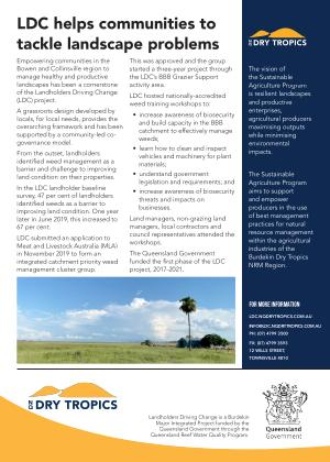 Empowering communities in the Bowen and Collinsville region to manage healthy and productive landscapes has been a cornerstone of the Landholders Driving Change ( LDC ) project .