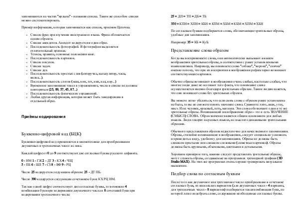 и приводить к виду, удобному для запоминания. Образы не должны быть