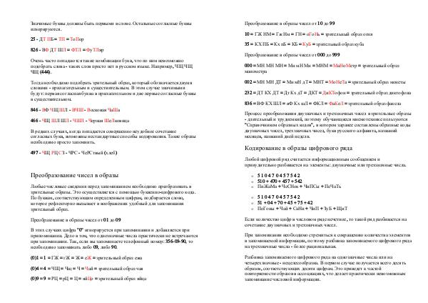 в запоминаемой информации, поэтому разбивка запоминаемого цифрового ряда