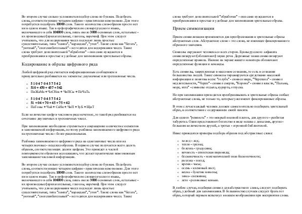 преобразовании в простые и удобные для запоминания зрительные образы.