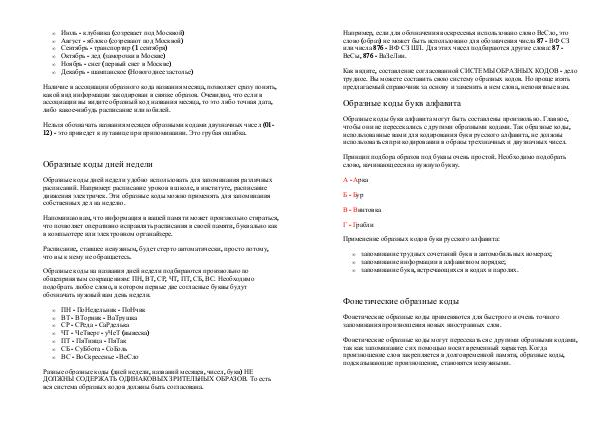 запоминание информации в алфавитном порядке;