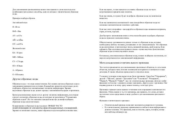 выученные образные коды делают процесс запоминания быстрым и приятным.