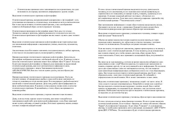 • Отличительные признаки легко запоминаются последовательно, что дает возможность по порядку вспоминать информацию о группе людей.
