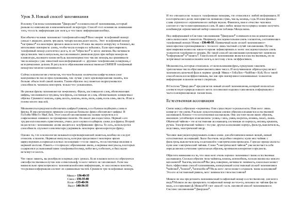 раньше не описывался в мнемонической литературе. Способ этот основан на понимании
