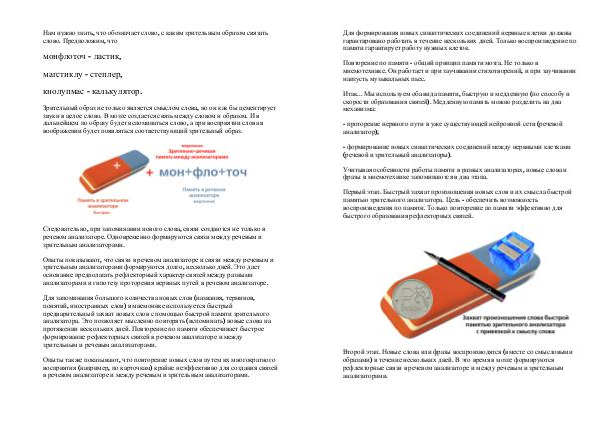 анализатора. Это позволяет мысленно повторять (вспоминать) новые слова на