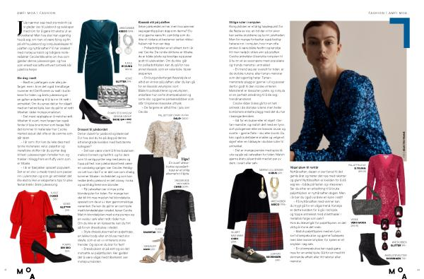– Det mest opplagte er å matche rødt tilbehør til svart , men fargen kan også funke til lyse bruntoner som beige . Når det kommer til materialer har Cecilie merket seg at det ofte er de samme som går igjen .