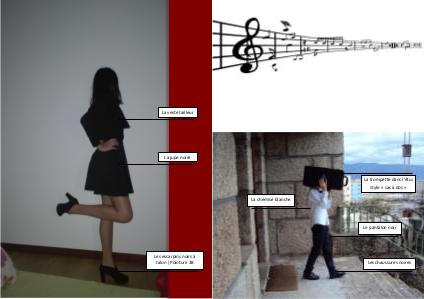La trompette dans l’étui style « sac à dos » La chemise blanche Le pantalon noir Les chaussures noires