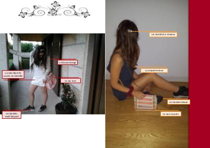 Les barrettes à cheveux La salopette bleue Les baskets bleues Le sac à rayures