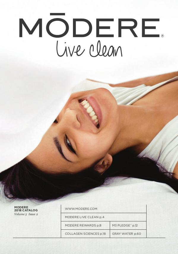 MODERE 2018 CATALOG Volume 5 Issue 2 WWW.MODERE.COM MODERE LIVE CLEAN p.4 MODERE REWARDS p.8 M3 PLEDGE ™ p.12 COLLAGEN SCIENCES p.18 GRAY WATER p.60 www.modere.com 1