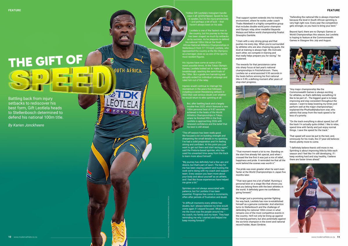 Battling back from injury setbacks to rediscover his best form, Gift Leotlela heads to Stellenbosch determined to defend his national 100m title.